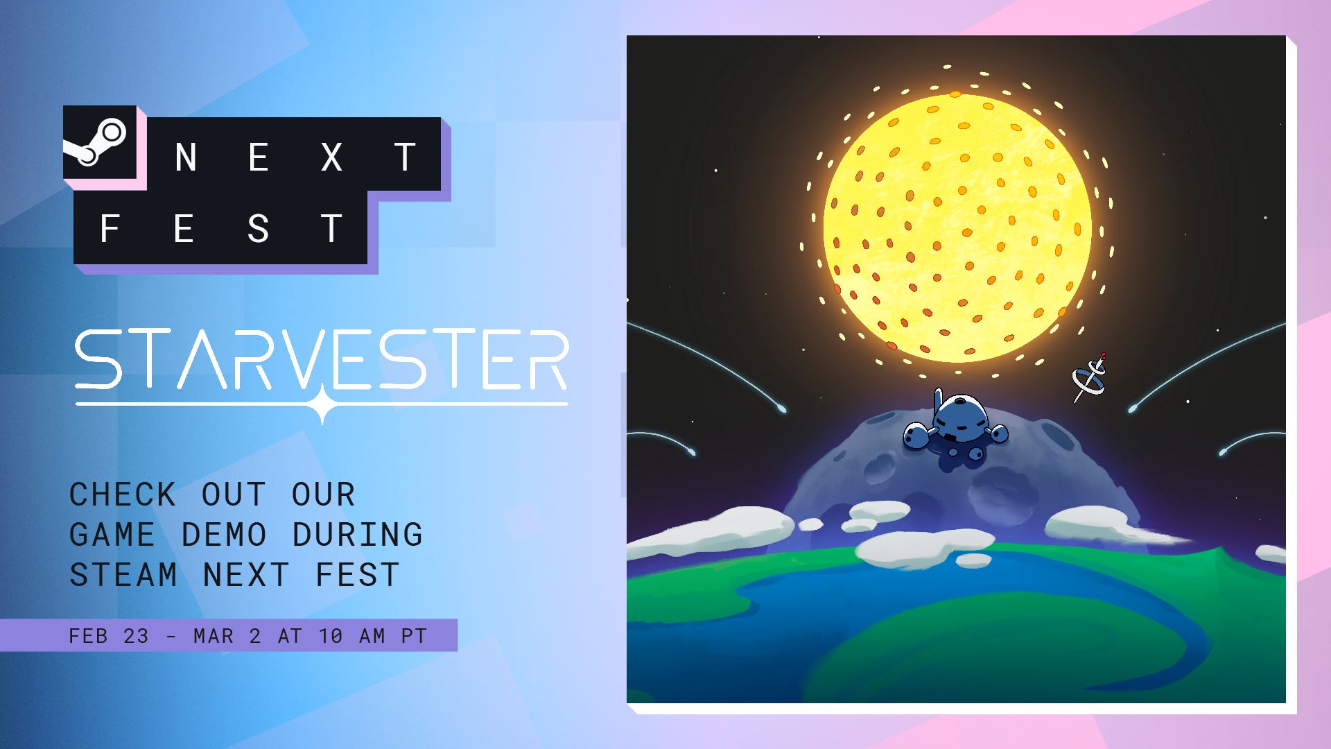 Firstly, Starvester (play here: https://store.steampowered.com/app/4194800/Starvester/):